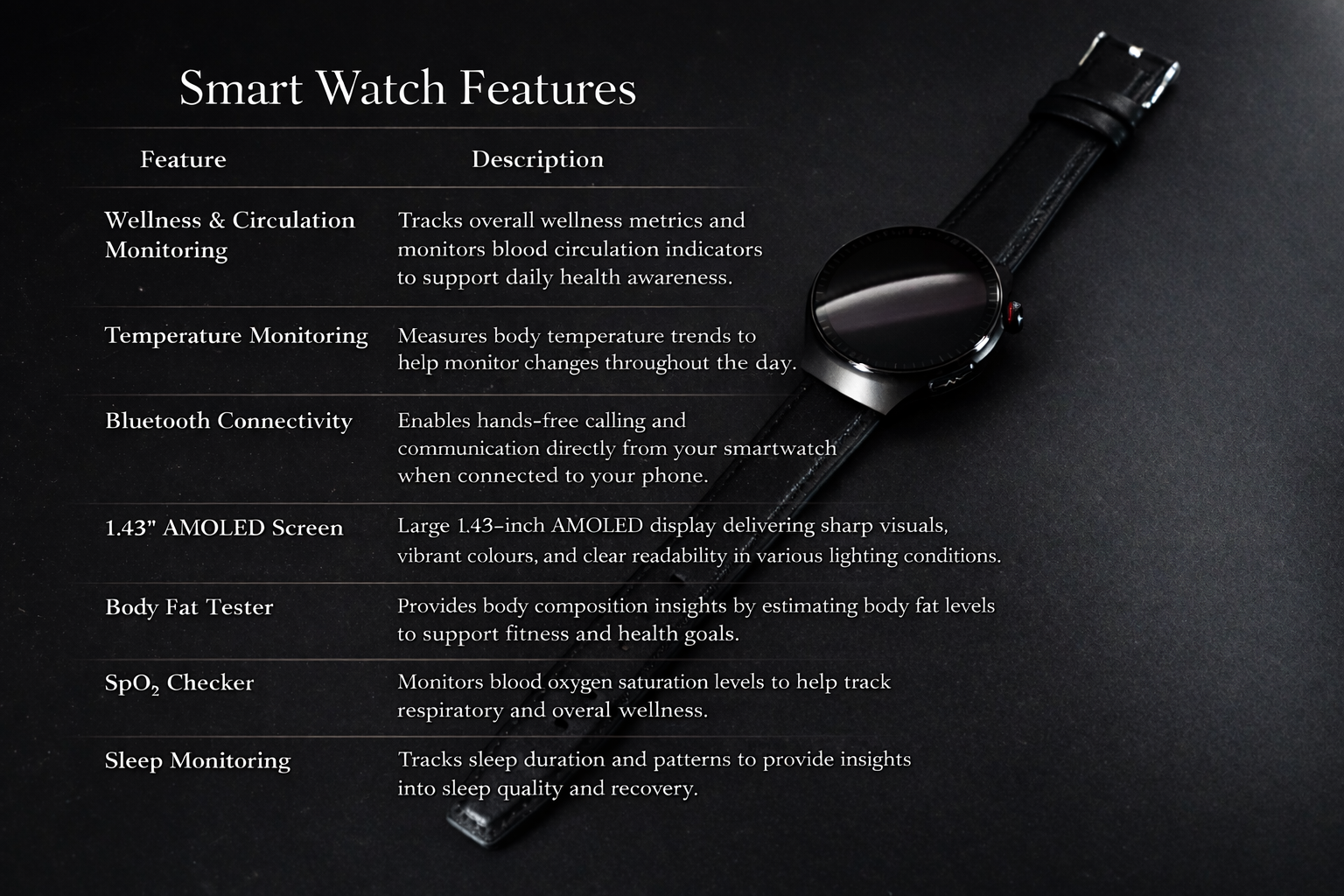 The Pro Smart Watch blends style, convenience, and smart features in one sleek design. Its bright AMOLED display and customizable watch faces let you show your style while staying connected all day.